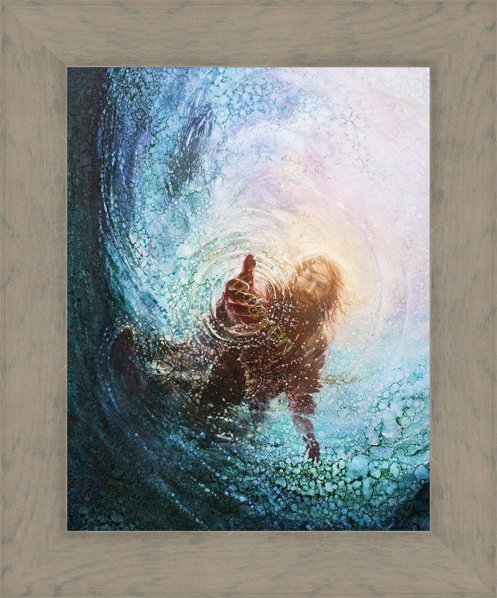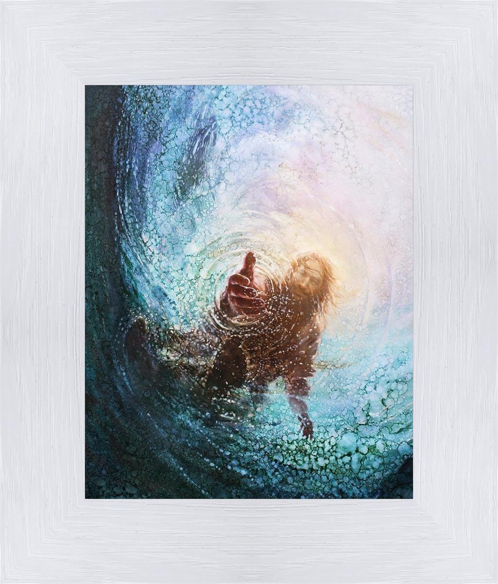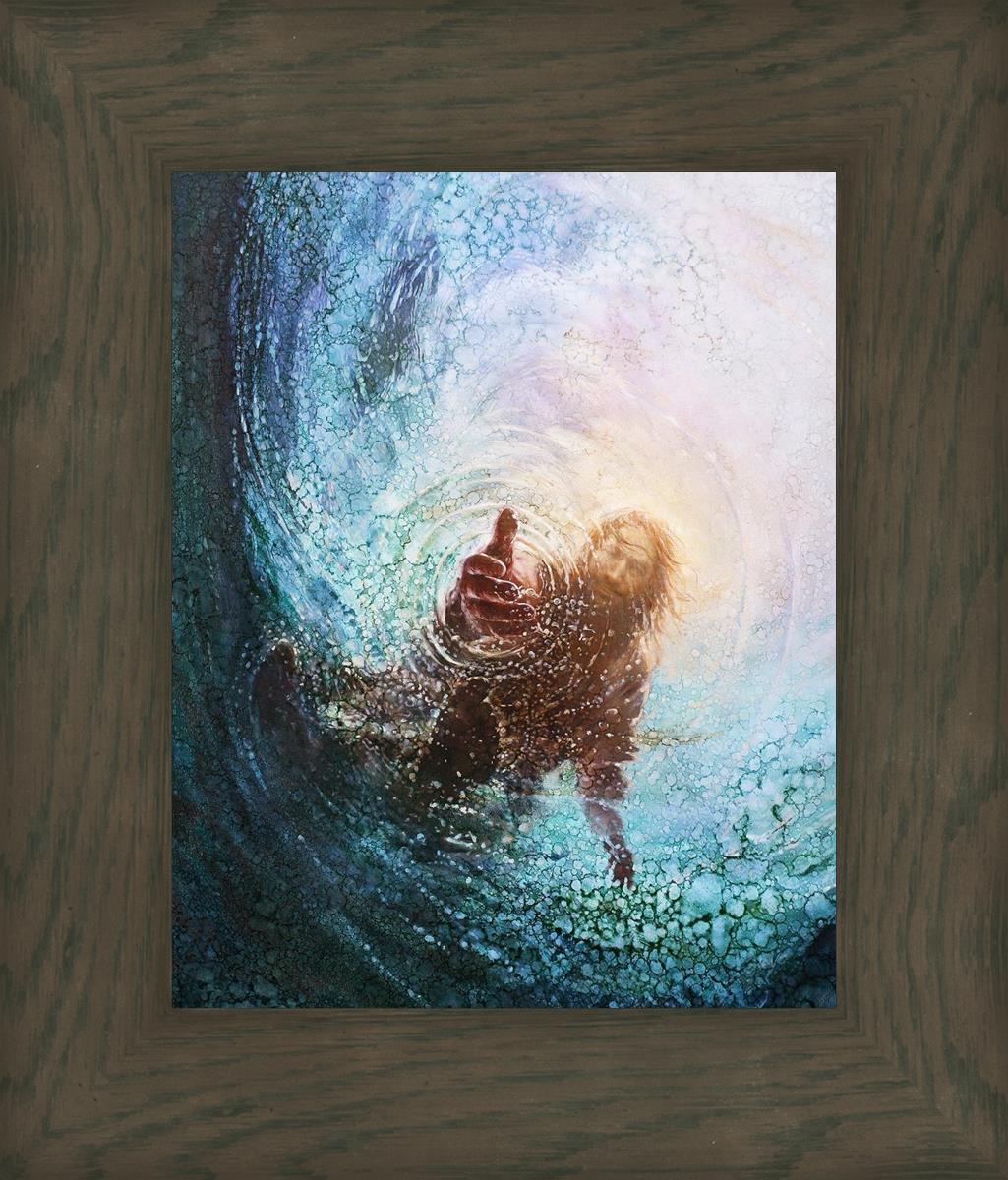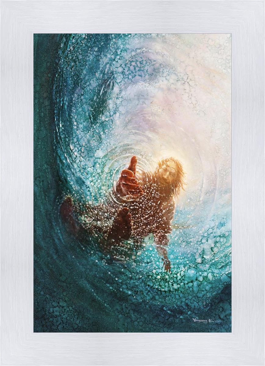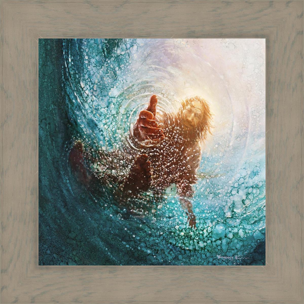 It's incredible that Peter walked on water for a short time, but even more miraculously was Jesus saving Peter. The Hand of God was painted from the perspective of Peter. Painting The Hand of God in this way, it is very easy for each of us to see ourselves as Peter: seeing ourselves ""drowning"" metaphorically and needing the Jesus Christ to save us. Jesus walking on water to save Peter is one of the most searched online Bible stories of all time and one that people the world over connect with on a deep level. Most paintings that portray this story do so from a third party perspective. Instead, Yongsung Kim chose to portray this story from the first person perspective of Peter.