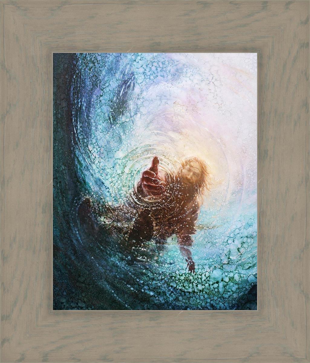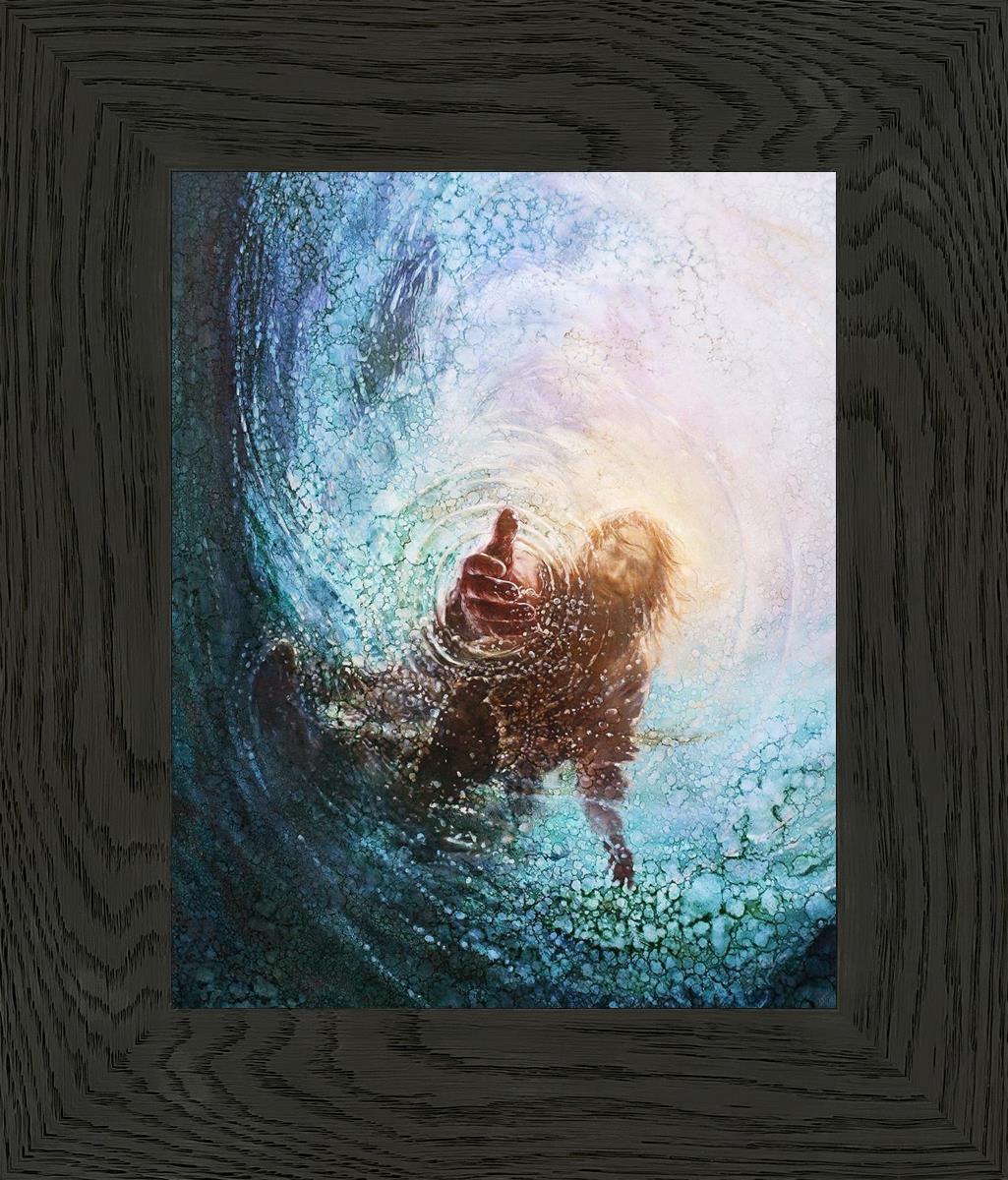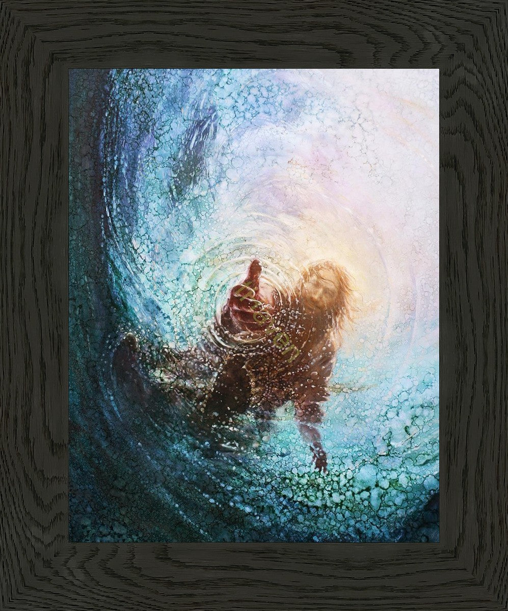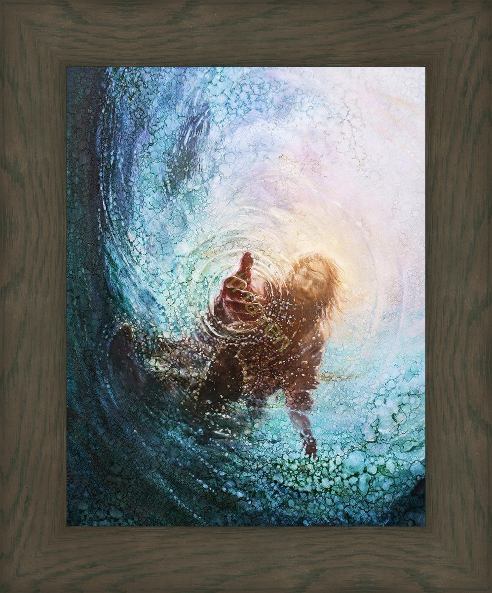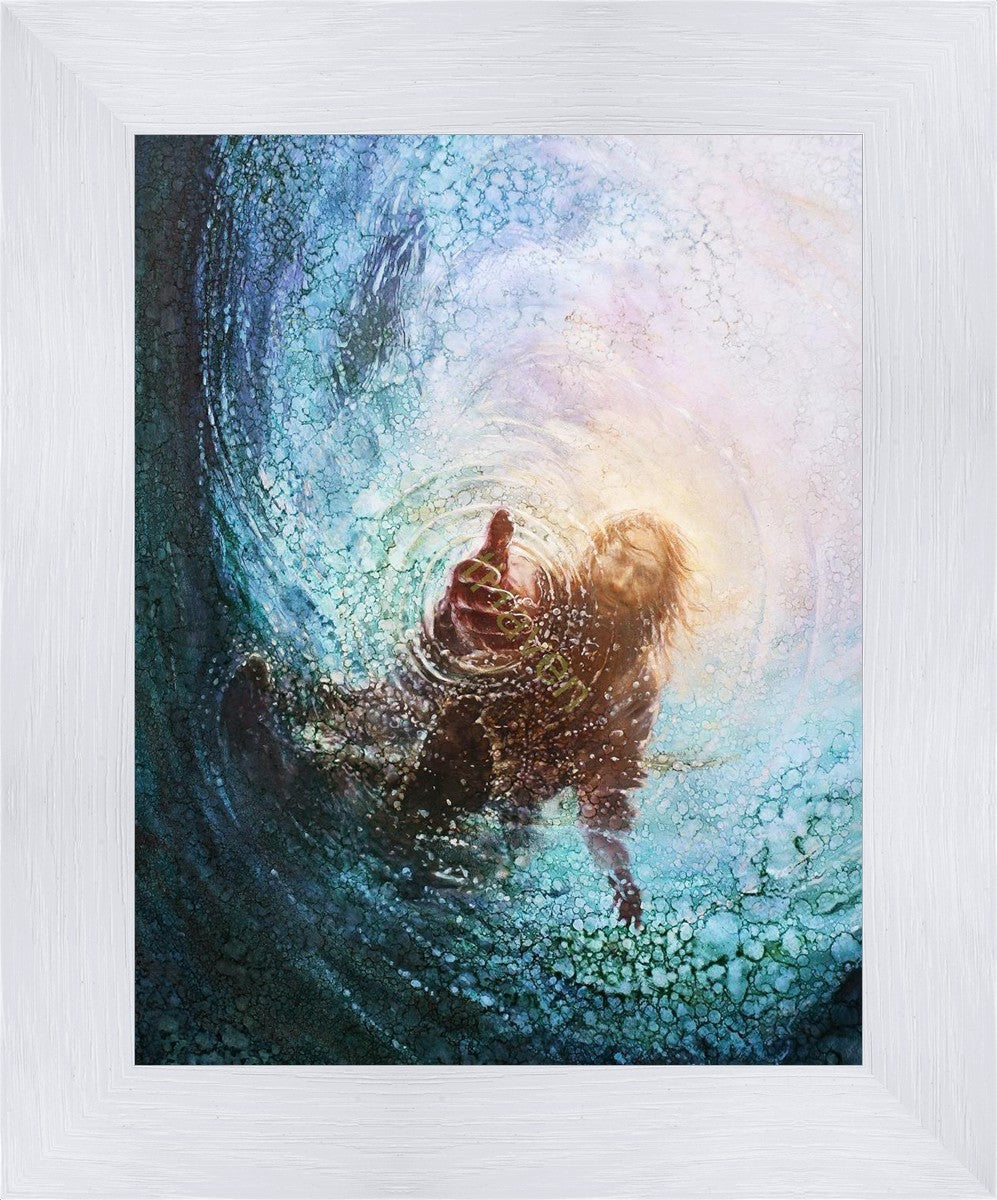 It's incredible that Peter walked on water for a short time, but even more miraculously was Jesus saving Peter. The Hand of God was painted from the perspective of Peter. Painting The Hand of God in this way, it is very easy for each of us to see ourselves as Peter: seeing ourselves ""drowning"" metaphorically and needing the Jesus Christ to save us. Jesus walking on water to save Peter is one of the most searched online Bible stories of all time and one that people the world over connect with on a deep level. Most paintings that portray this story do so from a third party perspective. Instead, Yongsung Kim chose to portray this story from the first person perspective of Peter.