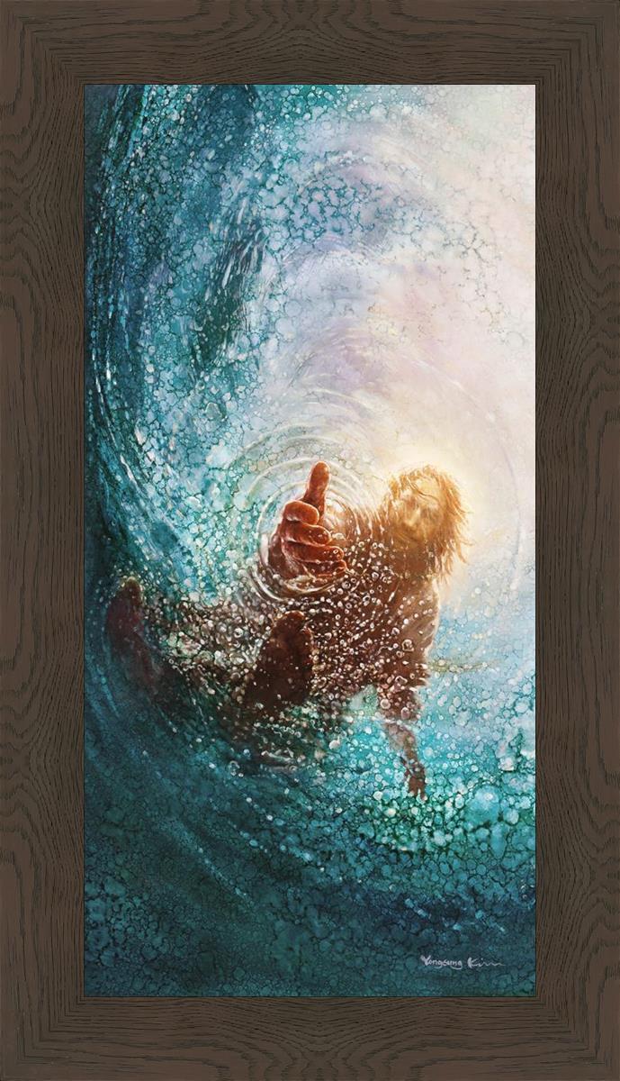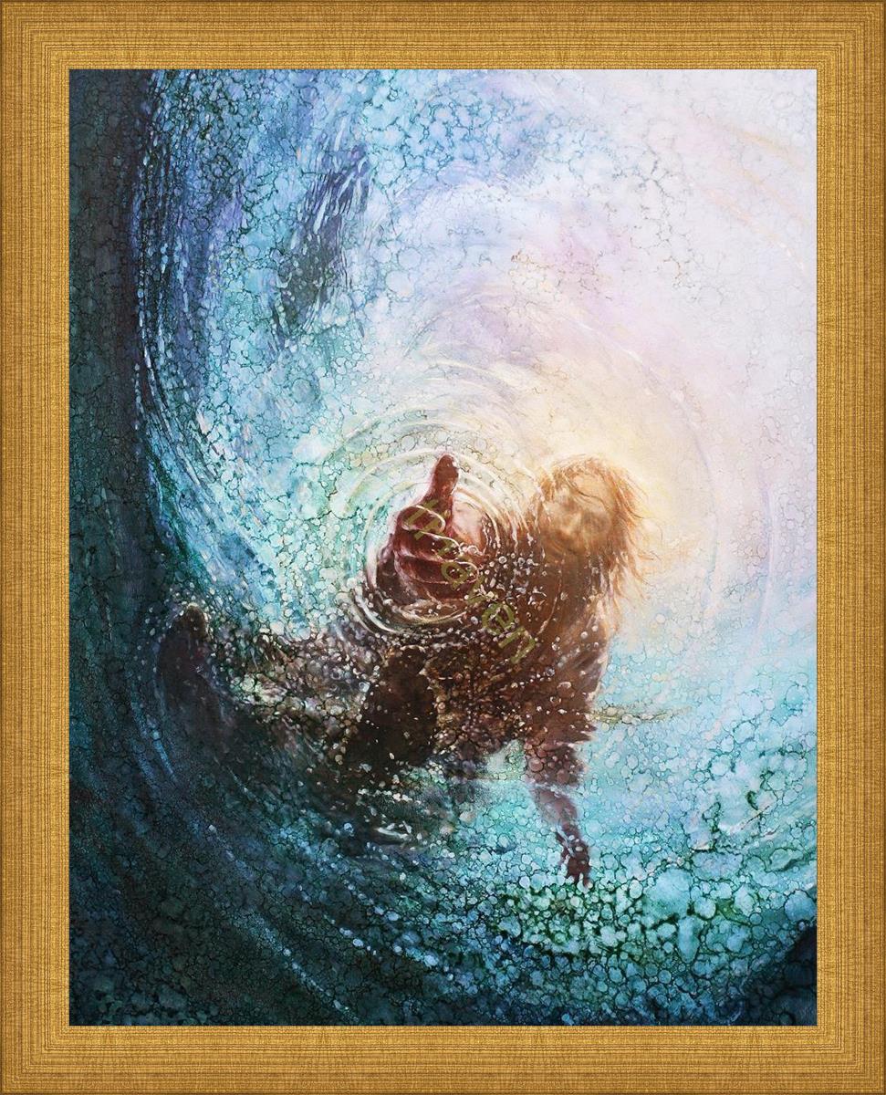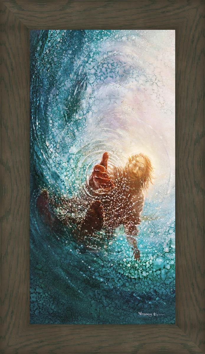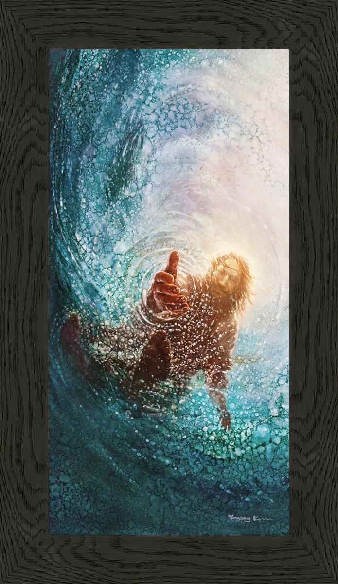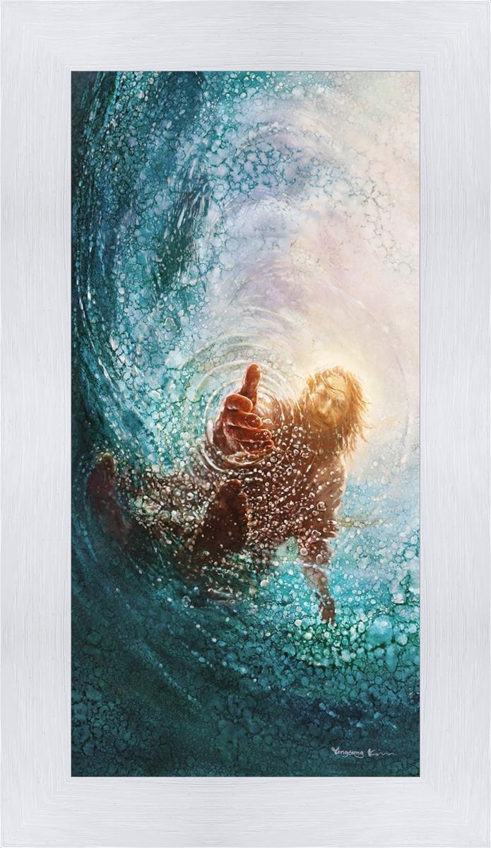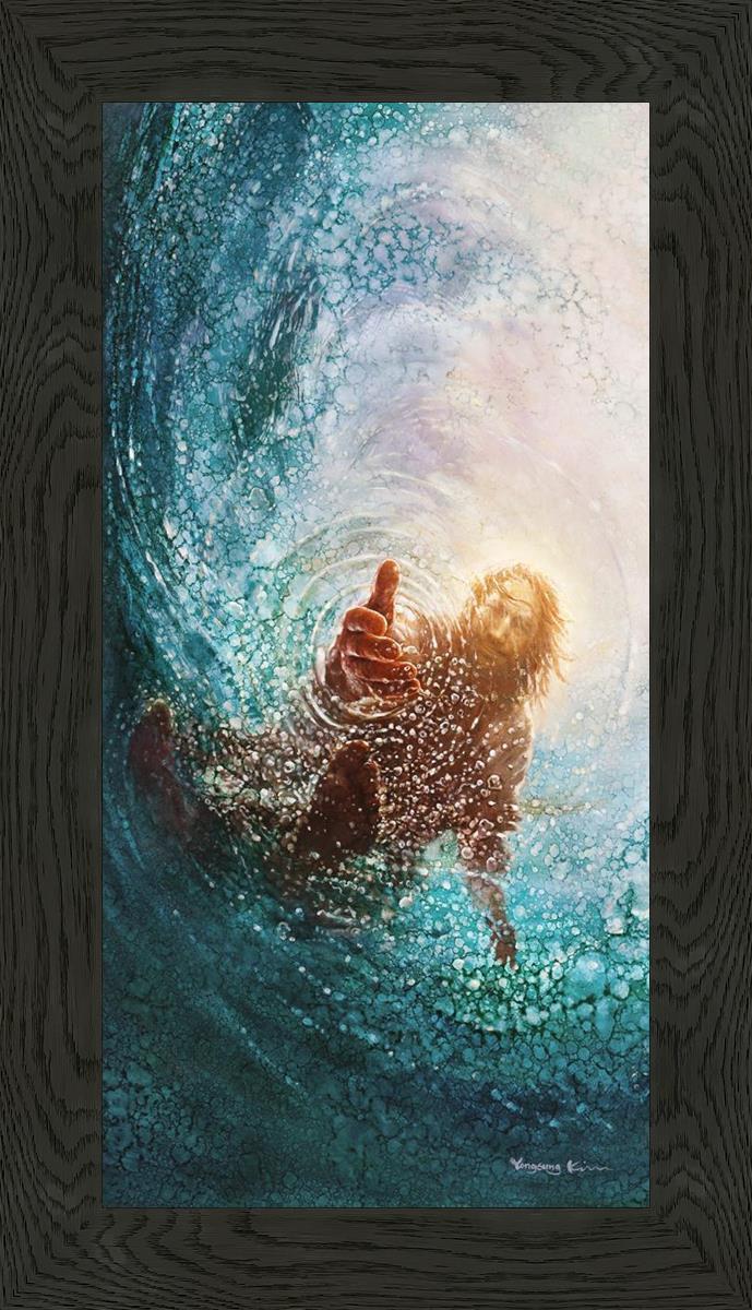 Continue Shopping"This painting is by Yongsung Kim, it is called The Hand of God. This painting portrays the experience of Jesus walking on water, and then saving Peter from drowning.