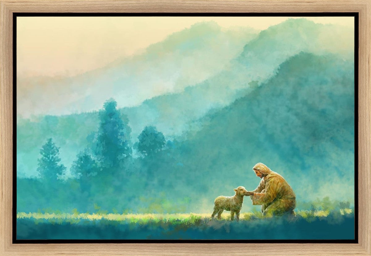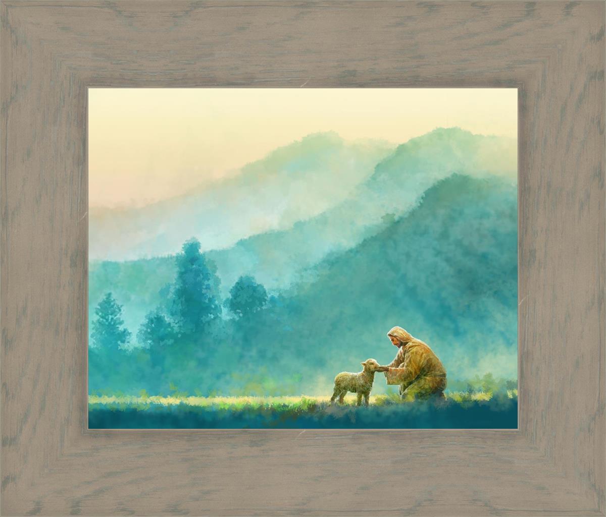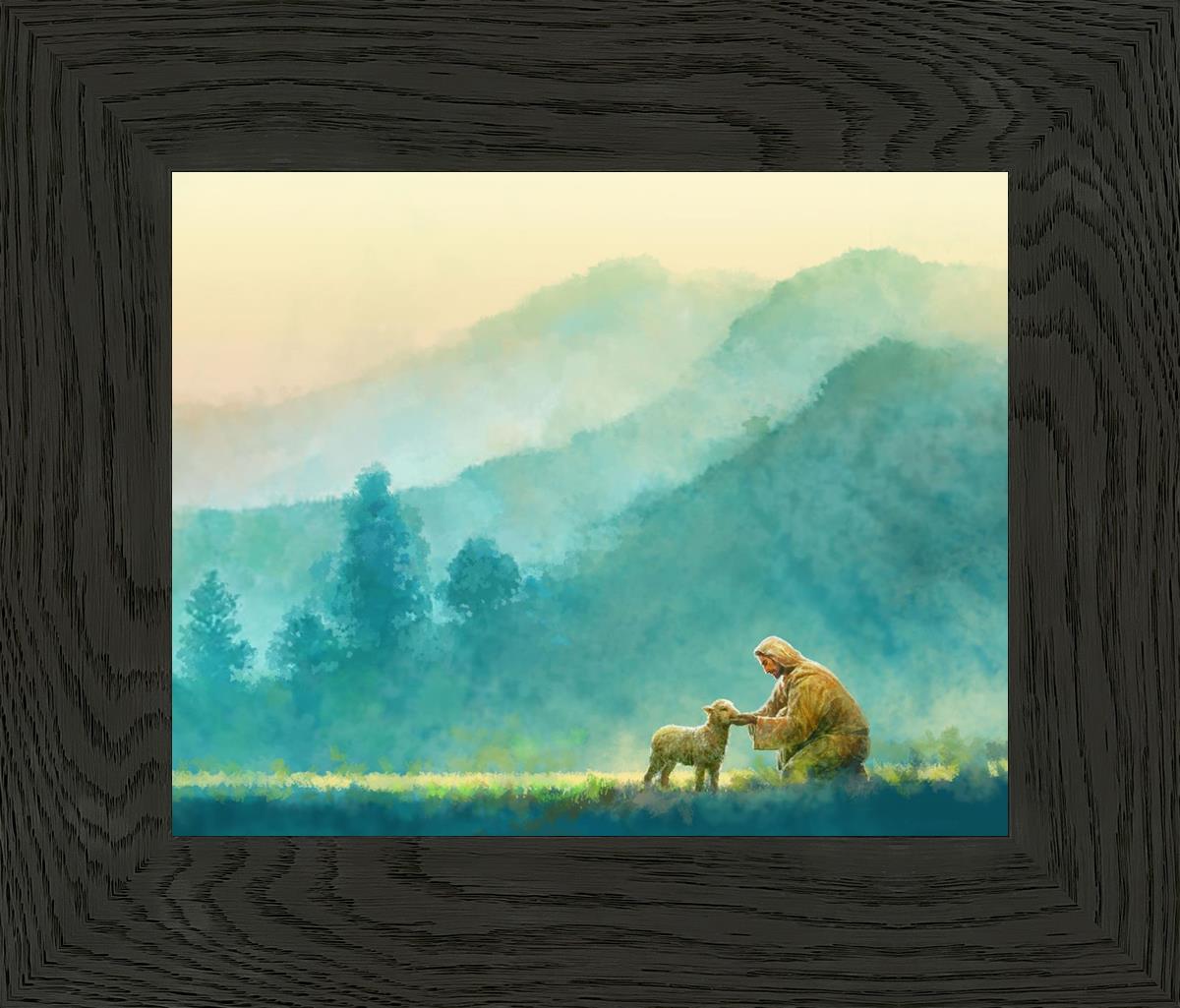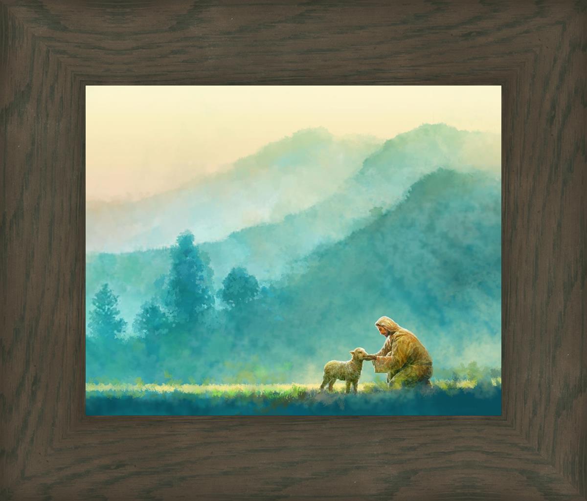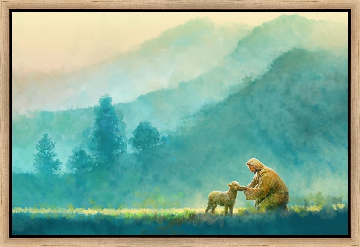 Continue Shopping"Little One" by Yongsung Kim is a painting showcasing Jesus Christ tenderly caring for a lost lamb in a vast field, symbolizing His role as the Good Shepherd. This captivating artwork by Yongsung Kim captures the essence of divine care and compassion, for each and every member of His flock.